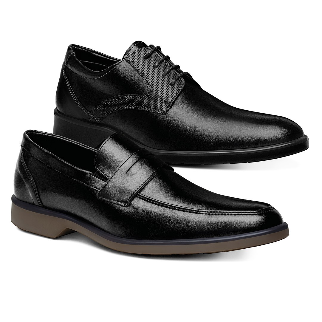 Sapato Casual Masculino de Sintético, cor Preta com Solado Bicolor Preto/Ambar