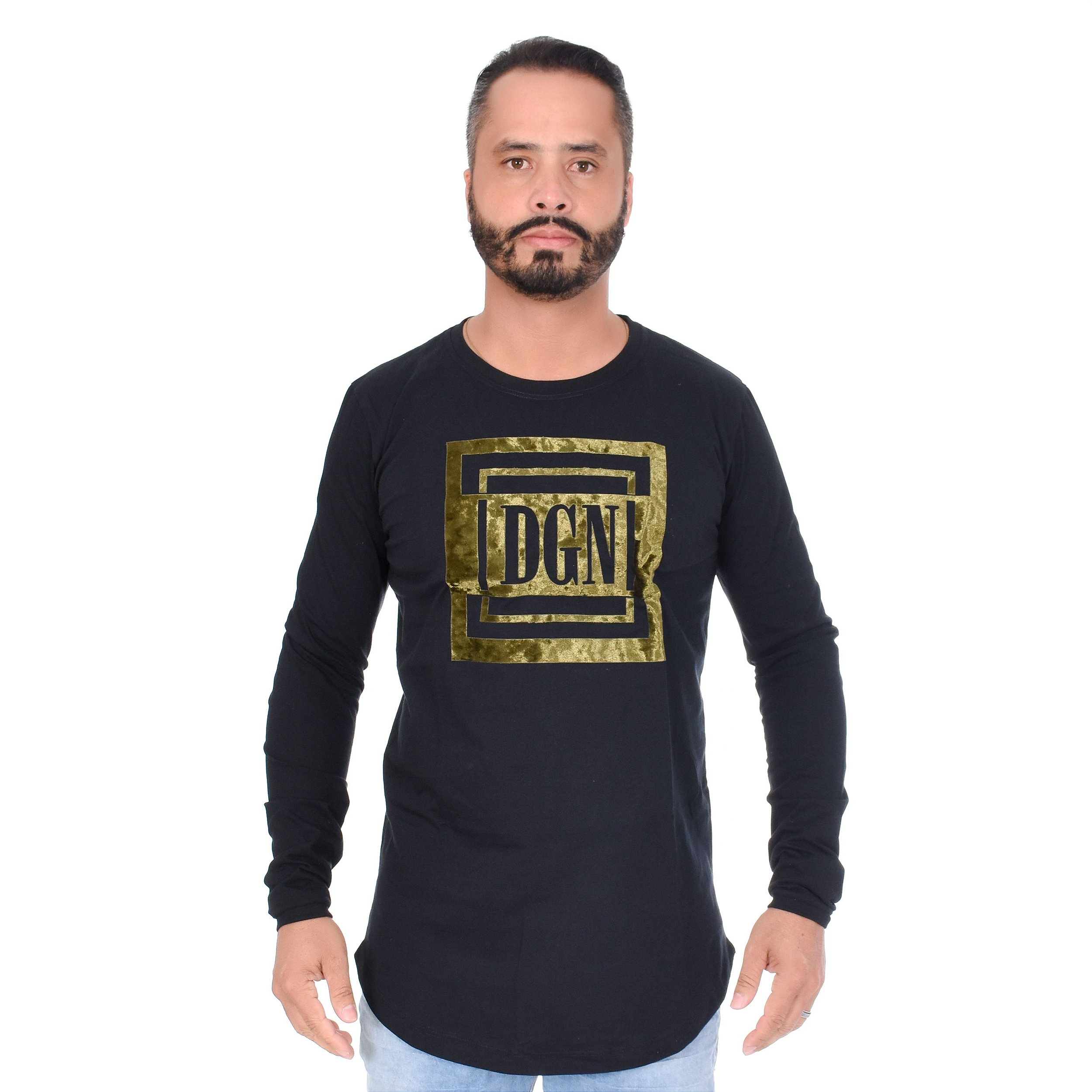 Camiseta Masculina Dgn Swag Longline Manga Longa Com Punho