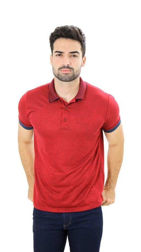 Um polo prime tem padronagem furta-cor bicolor, pontos sutis e elegância em sua combinação de cores.