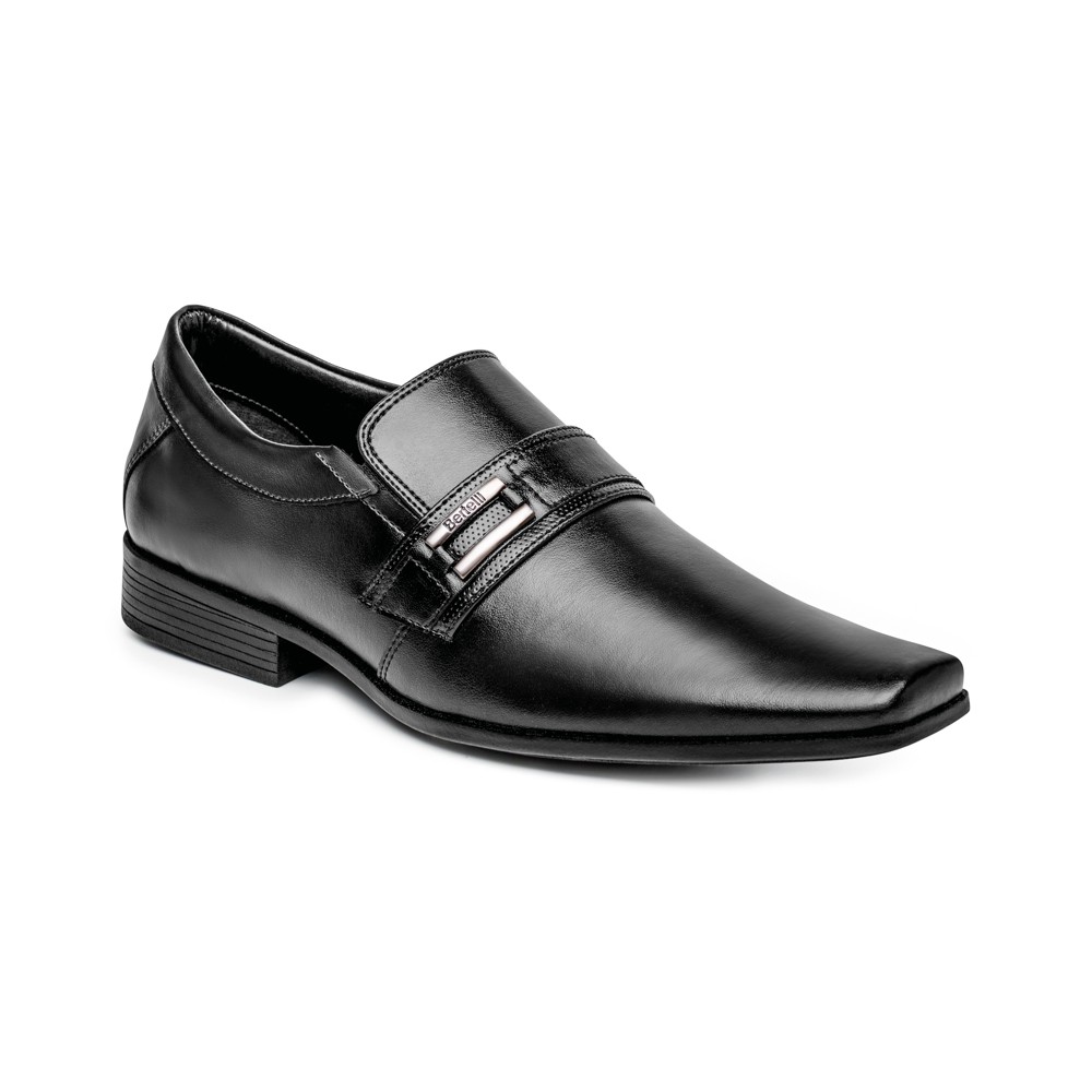 Sapato Social Forma Alongada Masculino de Sintético, cor Preto com Solado Preto